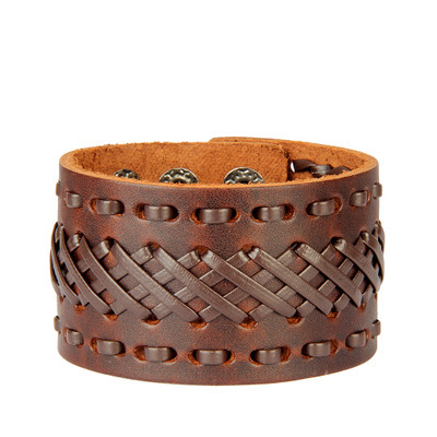 Bracelet manchette en cuir tressé
