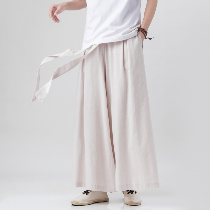 Pantalon ample en coton et lin, style chinois traditionnel – tailles étendues pour homme