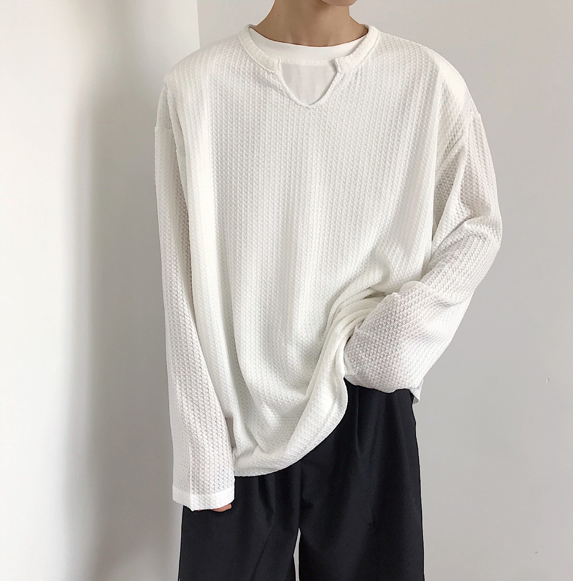 Ce haut oversize en maille texturée offre une silhouette fluide et relax, tout en restant élégant et parfaitement structuré. Sa coupe ample enveloppe le corps avec douceur, créant un look à la fois décontracté, moderne et subtilement sensuel.