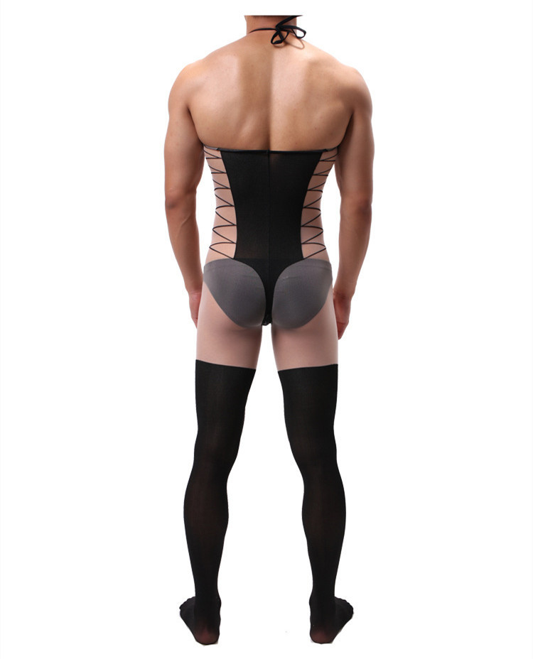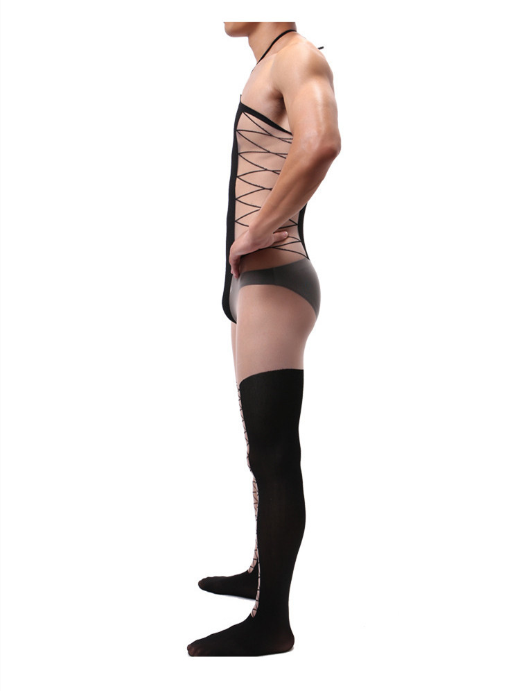 Mots-clés : bodystocking homme, lingerie masculine sexy, maille ouverte, silhouette sensuelle, vêtement provocateur élégant